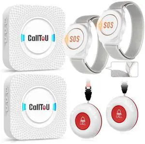 CallToU Caregiver Pager Wireless Call Button Nurse Alert System 500+ Feet for Home/Elderly/Patient/Disabled 2 Plugin Receiver 2 Waterproof Transmitter 2 Watches Transmitter