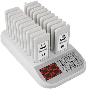LOUKIENE Wireless Restaurant Pager System, 20 Beepers, White Calling System Waiting Beepers for Queue in Restaurants Food Truck Churches Hospital Hotel Bar Eatery with Vibration Flash and Buzzer