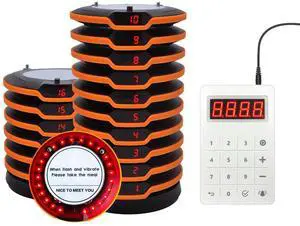 Daytech 10-Pack Wireless Pager System - Social Distancing Buzzer & Guest Calling Device for Restaurants, Retail, Healthcare (Waterproof, Rechargeable Beepers)