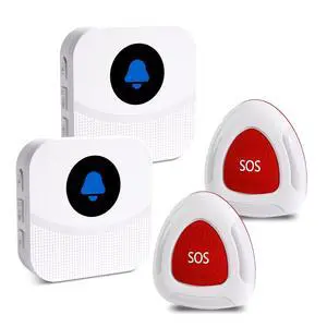 KOOSTONE Wireless Nurse Call System, 2 SOS Pendant Buttons & 2 Plug-in Receivers, 500FT Long Range for Home, Elderly, Patient, Caregiver Pager with 55 Ringtone & 110DB Loud Alert