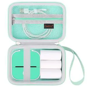 Canboc Carrying Case for Memoking/Ponek/Phomemo/Omezizy/Memoqueen T02 Mini Printer Sticker Printer, T02 Portable Thermal Printer Box for Thermal Paper, USB Cable, Green (Case Only)