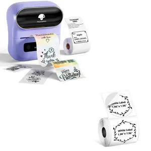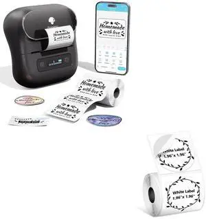 Phomemo M108 Label Maker Machine with 1.96"x1.96" Round Theraml Labels,230 Labels/Roll, for Barcode/Address/Mailing/Logo/Business/Home Tag