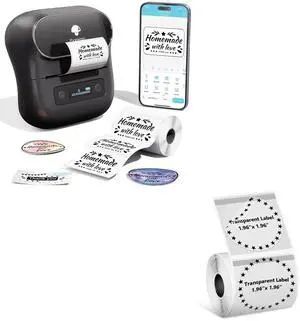Phomemo M220 Label Maker & 1 Roll Transparent Thermal Labels, 1.96" x 1.96"(50x50mm)