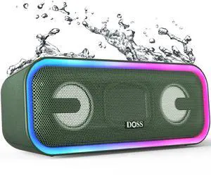 DOSS SoundBox Pro+ Bluetooth Speaker, Immersive 24W Stereo Sound with Booming Bass, IPX6 Waterproof, 15H Playtime, Mixed Colors Lights, Wireless for Backyard, Hiking, Garage, Party-Green