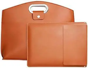 Hibilog PU Leather 2-in-1 Laptop Sleeve&Pouch Set with Metallic Handle, Waterproof 14-16Inch Laptop Briefcase for Work Travel