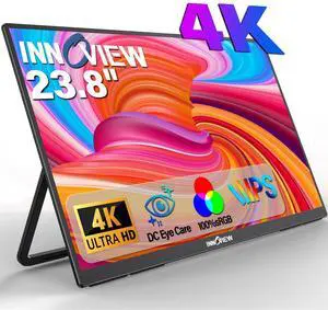 Innoview 23.8 4K Large Portable Monitor, UHD (3840*2160) 100%sRGB IPS Speakers USB-C HDMI Work Home Second Monitor W/180Adjustable Stand for Laptop, Desktop, Macbook, Phones, Tablet, PS5/4, Switch