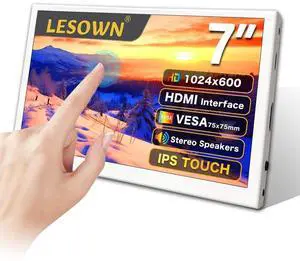 LESOWN Small Monitor 7 inch 1024x600 IPS Capacitive Touch 7" HDMI Wide Screen Portable LCD Display with Speakers for Raspberry Pi Laptop White