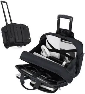 LASUK Rolling Briefcase Laptop Bag,17.3" Computer bag with wheels, Water Repellent Travel Roller Underseat Bag with RFID Blocking Pocket,Rolling Work Bags for women/men -Black
