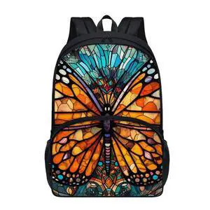 Rivatimrio Stained Glass Butterflies Backpacks Outdoor Travel Lightweight Cute Monarch Butterfly Bookbag Girls Boys Teenagers Laptop Compartments School Bag Orange Blue