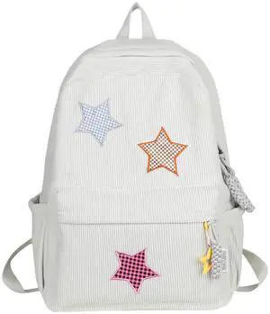 Taolivingmart Corduroy Backpack with Star Pattern, Trendy and Versatile, Fits 14'' Laptop Large Capacity Daily Commute (Beige)