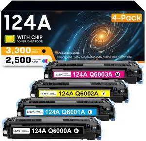 124A Toner Cartridge (4 Colors, K/C/Y/M) Replacement for HP 124A Q6000A Q6001A Q6002A Q6003A Toner Compatible for HP Color Laser Jet 1600 2600 2600n 2605 2605dn 2605dtn CM1015 CM1017 MFP Printer