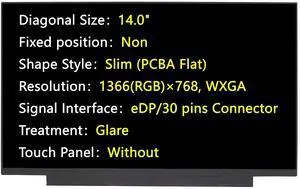 JHK JIEHONGKE New Screen Replacement for NT140WHM-N43 NT140WHM-N34 NT140WHM-N51,14.0",eDP 30 pins Connector,1366(RGB)768 WXGA,Glare,LCD LED Display