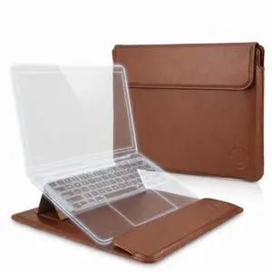 Brown Premium Laptop Sleeve 14-15.6 Inch ONLY Not for 11-13.3 MacBook Pro Air 15 Dell XPS HP Envy Lenovo ThinkPad Surface Waterproof PU Leather Stand Mouse Pad Business