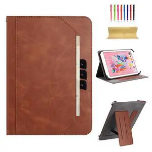 Dteck Universal Tablet Case for iPad/Samsung/Lenovo/Android 15/14/13/12/11 Tablet (9.6/9.7/10/10.1/10.2/10.36/10.4/10.5 Inch), PU Leather Solid Folio Case with Kickstand/Hand Strap/Pocket/Slots, Brown