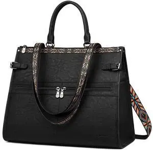 FADEON Laptop Bag for Women Designer PU Leather Large Tote Bags Backpack Purses with 15.6 Laptop Compartment Travel Shoulder Handbag Black