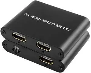 Bytecc 8K HDMI 2.1 Splitter, HDMI Splitter 1 in 2 Out, Compatible with Xbox, PS5, TV, Projector, etc (Black 8K 1 in 2 Out)