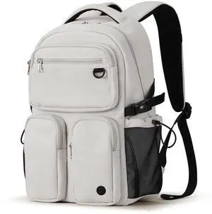 mixi Travel Laptop Backpack, Lightweight Durable School Bookbag Men Woman 15.6" Computer Bag, Water Resistant Outdoor Hiking Backpacks With Multifunction Pockets, 16 Inch, Beige