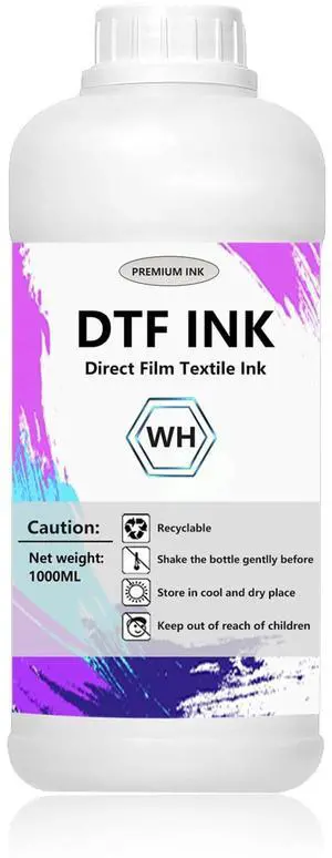 Kminoteh DTF White Ink - 1000ML DTF Transfer Ink for PET Film, Premium Pigment Ink Refill for P600 P800 DX5 DX7 R1390 XP600 i3200 4720 5113 Printers, High Fluidity & Coverage (33.8oz, White)