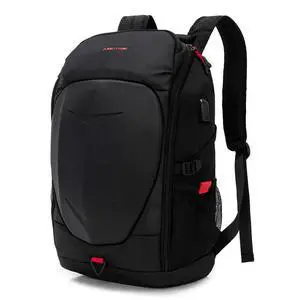 KINGSLONG 17 Inch Laptop Backpack with Hardshell, Armored Backpack with USB Port and Lightweight Rain Cover for Motorcycle Outdoor Racing Waterproof Rucksack Black