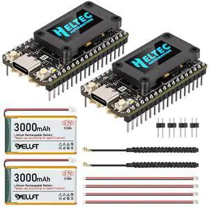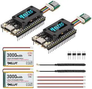YELUFT 2 Pack Pre-Soldered ESP32 LoRa V4 Development Board with 3000mAh Battery Set, Integrated WiFi Bluetooth SX1262 915MHz LoRa, 0.96-inch OLED Display, Type-C Interface for Meshtastic