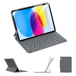 ZYNTHRALIX for iPad 11th (A16, 2025)/10th Generation Case with Keyboard, Ultra-Thin & Lightweight, Safe Pencil Buckle, Rechargeable Magnetic Detachable Keyboard for iPad 11th/10th 10.9" 2022, Grey