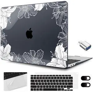 MEEgoodo for MacBook Air 13.3 inch Case 2021 2020 2019 2018 A2337 M1 A2179 A1932, Laptop Shell for MacBook Air M1 with Keyboard Webcam Cover & Trackpad Film & Type C Adapter,Lily Floral