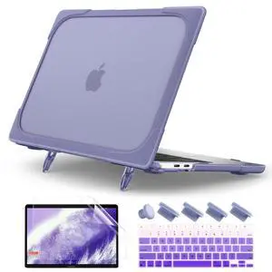 Batianda Heavy Duty Case for MacBook Air 13 inch 2020 A2179 A1932 A2337 M1 Chip with Touch ID, Ergonomic Foldable Kickstand (Holds 22lbs) Matte Translucent Protective Cover Keyboard skin,Lavender Gray