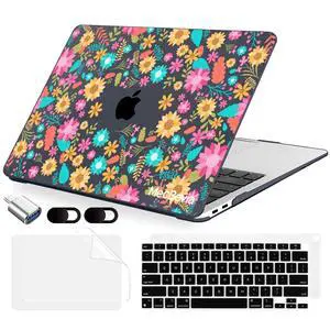 MecBevia Compatible with MacBook Air 13.3 inch Case 2021-2018 Release A2337 M1 A2179 A1932 Touch ID, Plastic Hard Shell&Keyboard Cover&Screen Protector&Webcam Cover&Type-C Adapter, Colorful Flowers