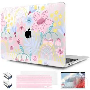 Lepeoac Case for MacBook Pro 13 inch with/Without Touch Bar (2016-2022, M2 A2338 M1 A2289 A2251 A2159 A1989 A1706 A1708), Hard Shell + Keyboard Cover + Dust Plug, Floral C322