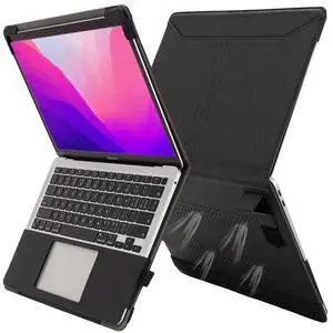 TYTX Compatible with MacBook Pro 13 Inch Case 2016-2025 PU Leather with Stand & Vents for Model M2 A2338 M1 A2251 A2289 A2159 A1989 A1708 A1706, Black