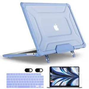 MEEgoodo for MacBook Air 13.6 inch Case 2025 2024 2022 (A3240/A3113/A2681) with M4/M3 M2, Laptop Hard Shell for MacBook Air 13", Cover with Heavy Duty Rugged Shockproof Kickstand, Sky Blue XK