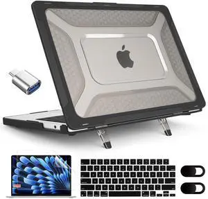 MEEgoodo Case for MacBook Air 15 inch 2025 2024 2023, Case Fit Model (A3241/A3114/A2941) with M4/M3/M2 Chip, Laptop Hard Shell with Heavy Duty Rugged Shockproof, Black