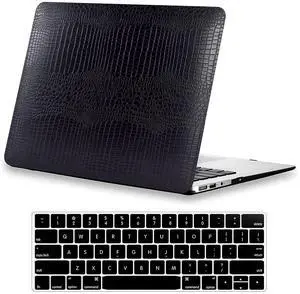 DTangLsm Compatible for Crocodile MacBook Pro 16 inch Case 2020 2019 Release A2141 Touch Bar, Crocodile Skin Alligator PU Leather Hard Shell Case for Older MacBook Pro 16" and Keyboard Cover, Black