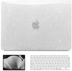 Anban Compatible with MacBook Air 13 inch Case 2022 2021 2020 2019 2018 M1 A2337 A2179 A1932, Glitter Plastic Hard Shell+ Keyboard Cover+ Screen Protector for MacBook Air 13.3 inch Case, Shiny Silver