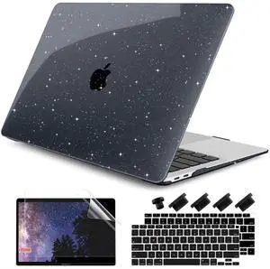 MOSISO Compatible with MacBook Air 13 inch Case 2025 2024 2023 2022 M4 A3240 M3 A3113 M2 A2681, Plastic Hard Shell&Keyboard Cover&Screen Film&Pouch for MacBook Air 13.6 inch Case, Crystal Starlight