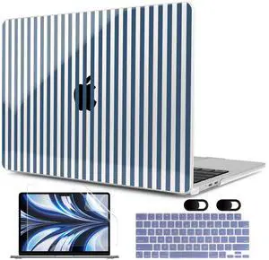 MEEgoodo Case for M4/M3/M2 MacBook Air 13.6 inch Case 2025 2024 2022, Fit Model A3240/A3113/A2681, Laptop Hard Shell with Keyboard Cover Compatible with MacBook Air 13 inch, Navy Blue Stripes