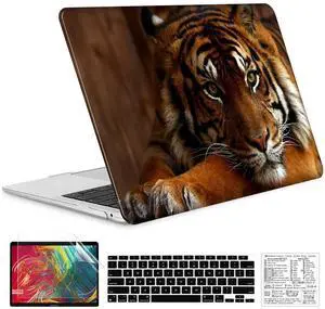 QCzyc Compatible with MacBook Air 13 Inch Case 2022, 2021-2018 M1 A2337 A2179 A1932 Wild Animal Plastic Shell Case &Keyboard Cover&Mac OS Keyboard Sticker (Tigers)