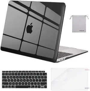 MOSISO Compatible with MacBook Air 13 inch Case M1 Chip 2021-2018 Release A2337 A2179 A1932, Plastic Hard Shell&Keyboard Cover&Screen Film&Storage Bag for MacBook Air 13.3 inch Case, Crystal Black