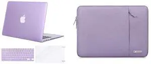 MOSISO Compatible with MacBook Air 13 inch Case 2010-2027 Rlease A1369 A1466, Plastic Hard Shell&Vertical Sleeve Bag with Pocket&Keyboard Cover&Screen Protector, Light Purple