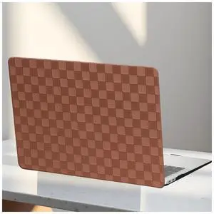 BYCeKe Checkered Case for MacBook Air 13 inch M5 M4 M3 M2 2026-2022 A3240 A3113 A2681,Leather Checker Gingham Grid Textured for MacBook Air 13.6 Hard Case&Keyboard Cover for Mac Air13,Checkered Brown