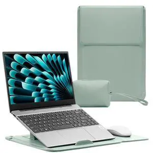 RoYiio 13-13.3-14 Inch Laptop Sleeve Case with Stand Feature Cover PU Leather Slim Bag for MacBook Pro 14" M5/M4/M3/M2/M1 & Pro/Max, MacBook Pro 13" M2/M1, MacBook Air 13" M5/M4/M3/M2/M1 (Light Green)