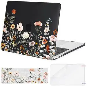 MOSISO Compatible with MacBook Pro 13 inch Case 2025, 2024, 20223-2016 M2 M1 A2338 A2251 A2289 A2159 A1989 A1708 A1706, Plastic Garden Flowers Hard Case&Keyboard Cover&Screen Protector, Black