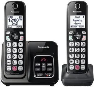 Panasonic Cordless Phone with Answering Machine, Advanced Call Block, Bilingual Caller ID and High-Contrast Display, Expandable System with 2 Handset Cordless Telephones - KX-TGD832M (Metallic Black)