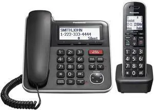 Panasonic Expandable Corded/Cordless Phone System with Answering Machine and One Touch Call Blocking 2 Handsets - KX-TGB852B (Black)