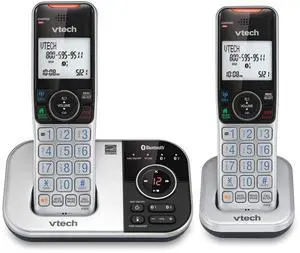 VTech VS112-2 DECT 6.0 Bluetooth 2 Handset Cordless Phone for Home with Answering Machine, Call Blocking, Caller ID, Intercom and Connect to Cell (Silver & Black)