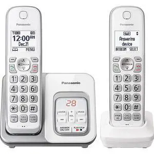 Panasonic DECT 6.0 Expandable Cordless Phone with Answering Machine and Smart Call Block - 2 Cordless Handsets - KX-TGD532W (White/Silver)