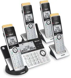 VTech Super Long Range 5 Handset DECT 6.0 Cordless Phone for Home with Answering Machine, 2300 ft Range, Call Blocking, Bluetooth, Headset Jack, Power Backup, Intercom, Expandable to 12 HS