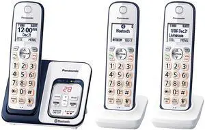 Panasonic 3 Handset Expandable Cordless Phone System with Link2Cell Bluetooth, Voice Assistant, Answering Machine and Call Blocking - KX-TGD563A (Navy Blue/White)