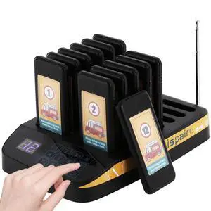 Crispaire Restaurant Pager System Pagers for Restaurants Waiting Buzzers Wireless Calling System Social Distancing Buzzer Long Working Distance Mute Function Food Truck Church Hospital (12 pagers)