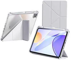 QoKcoahn Case for iPad Pro 11 inch Case (2024, 5th Generation),Crystal Clear iPad Case with Pencil Holder,Smart Stand Auto Wake/Sleep Protector Gray